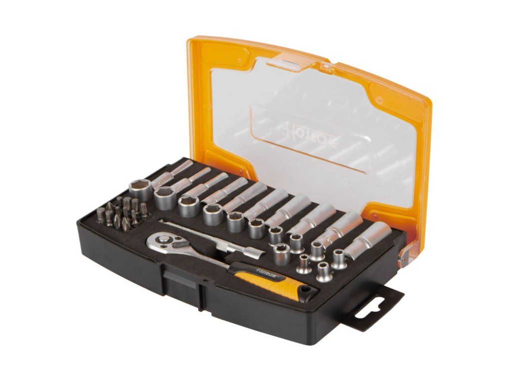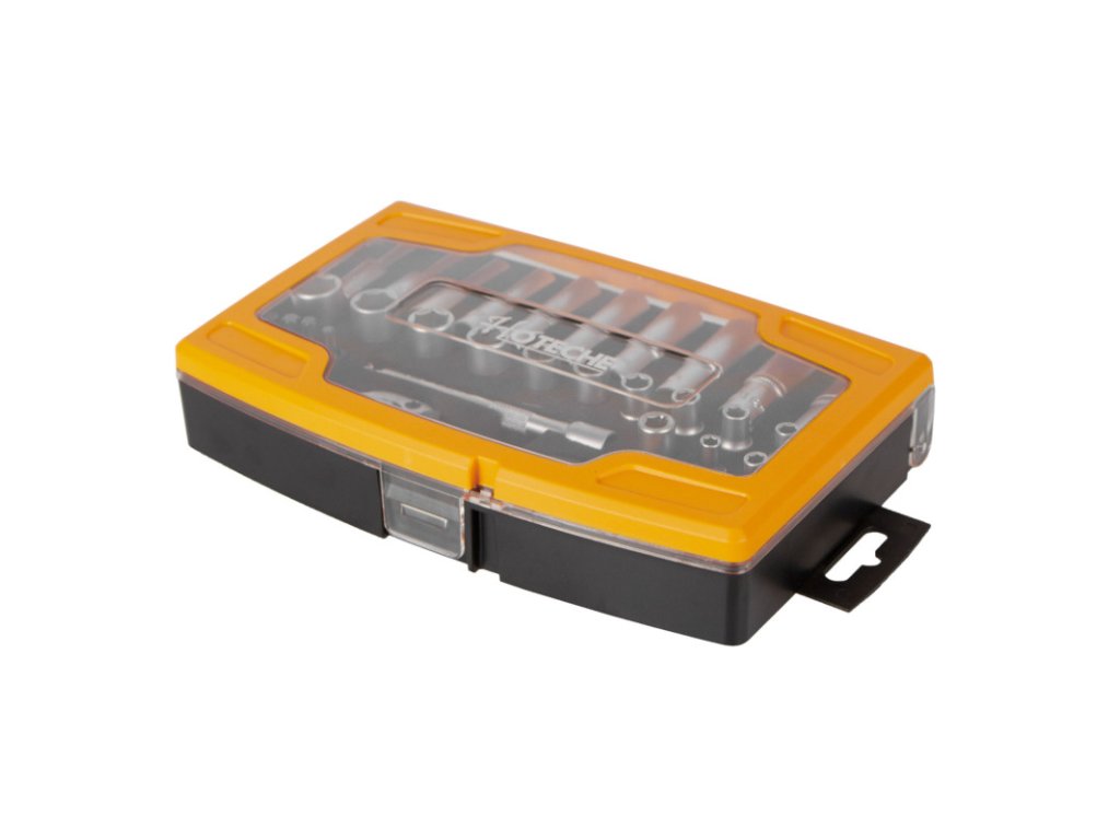 Sada bitů a nástrčných klíčů 1/4" v plastovém boxu od značky Hoteche.