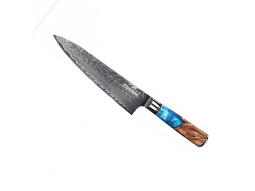 Sada nožů z damaškové oceli s rukojetí ze dřeva a pryskyřice a magnetickým dřevěným stojanem