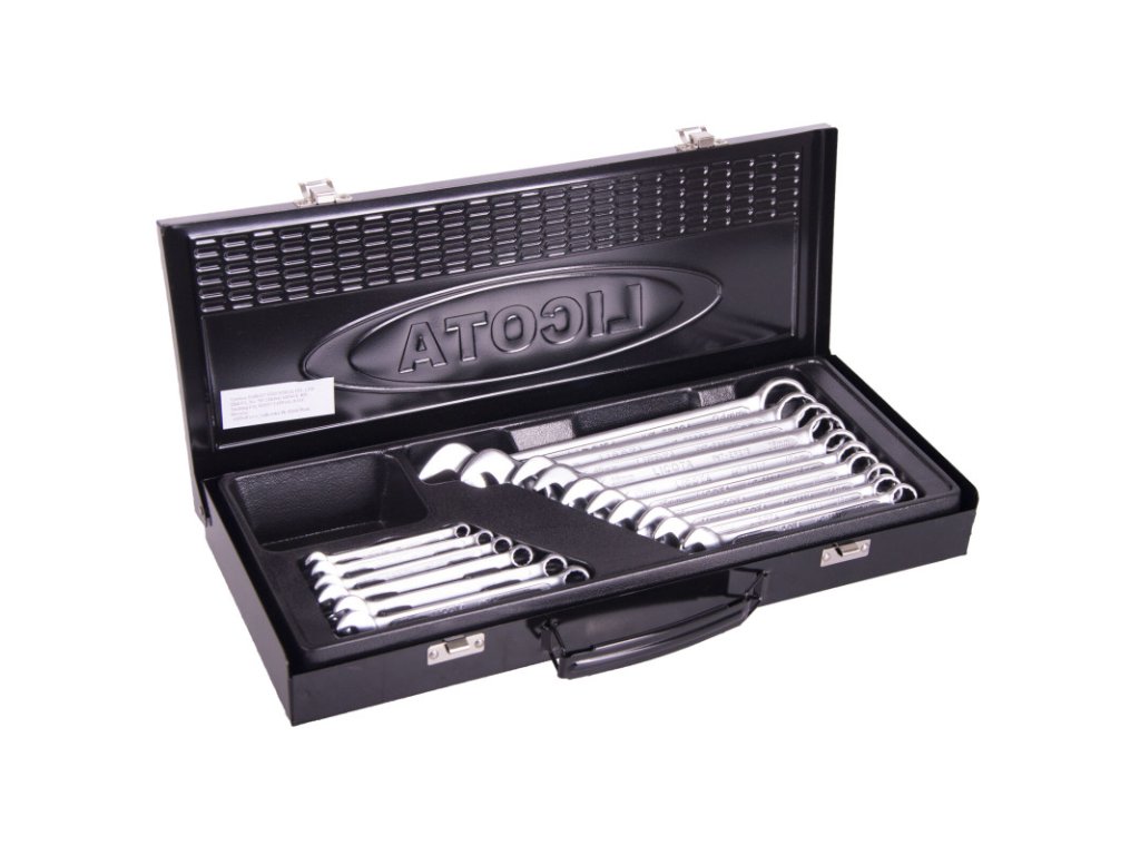 Profesionální sada 16 ks očkoplochých klíčů značky LICOTA je uložena v robustním plechovém kufříku s černým lakováním.