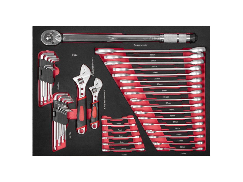 Sada očkoplochých klíčů a momentového klíče v pěnové výplni, je ideální pro snadný přístup k přehledně uspořádanému nářadí. Sada obsahuje 44 kusů nářadí, které pokryjí široké spektrum běžných oprav a údržby.