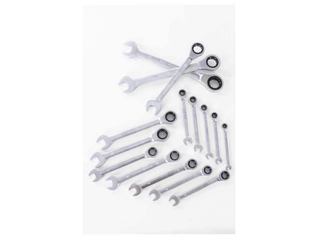 Sada 15 ks ráčnových očkoplochých klíčů v pěnové výplni do dílenského vozíku o velikostech: