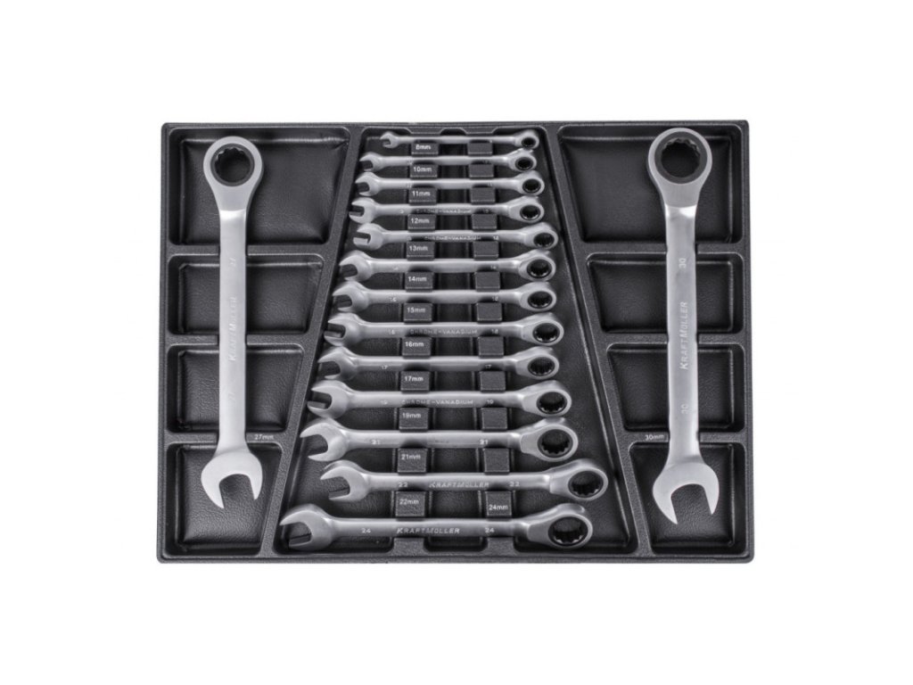 Sada ráčnových očkoplochých klíčů 15 dílů ve výplni do dílenských vozíků - VV015RK01