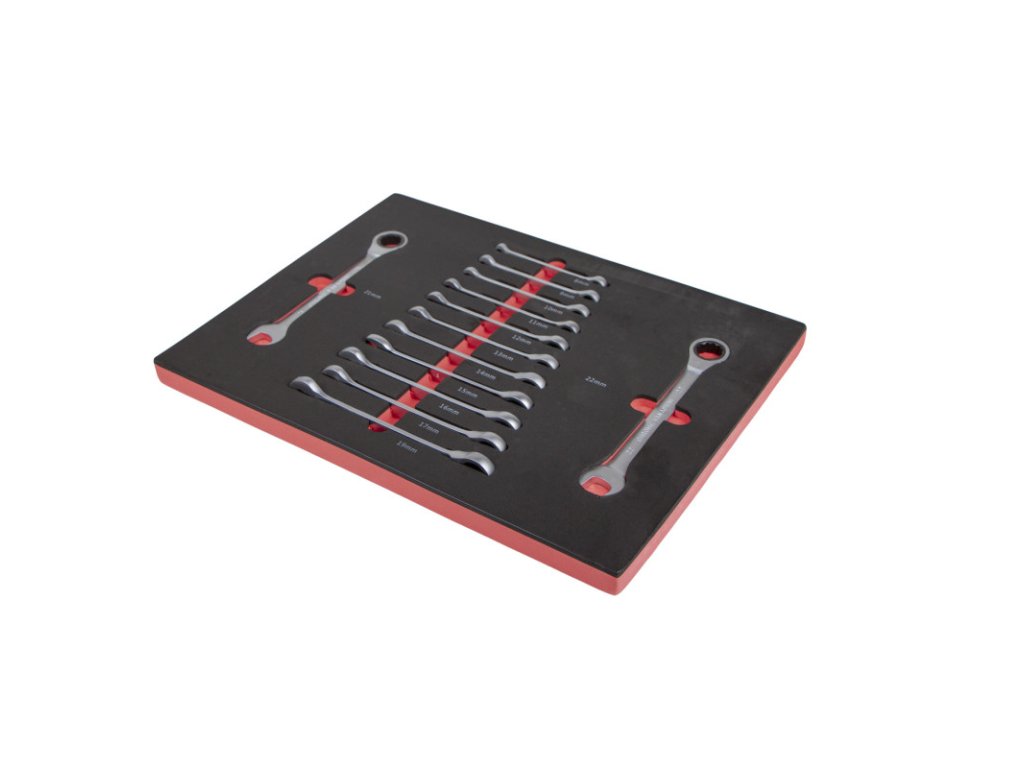 Sada ráčnových očkoplochých klíčů ve výplni do dílenského vozíku, 13 dílů - VV013RK01