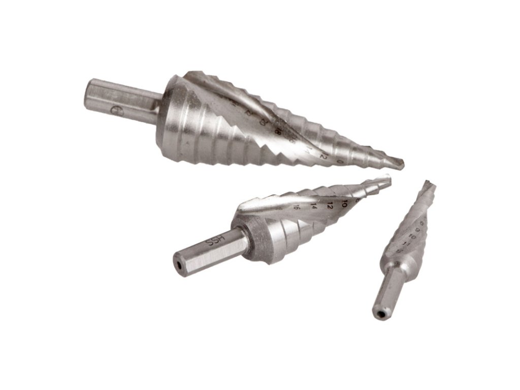 Stupňovitý vrták využijete pro vrtání běžných typů průmyslových plastů a kovu nebo pro vrtání ocelových desek.
