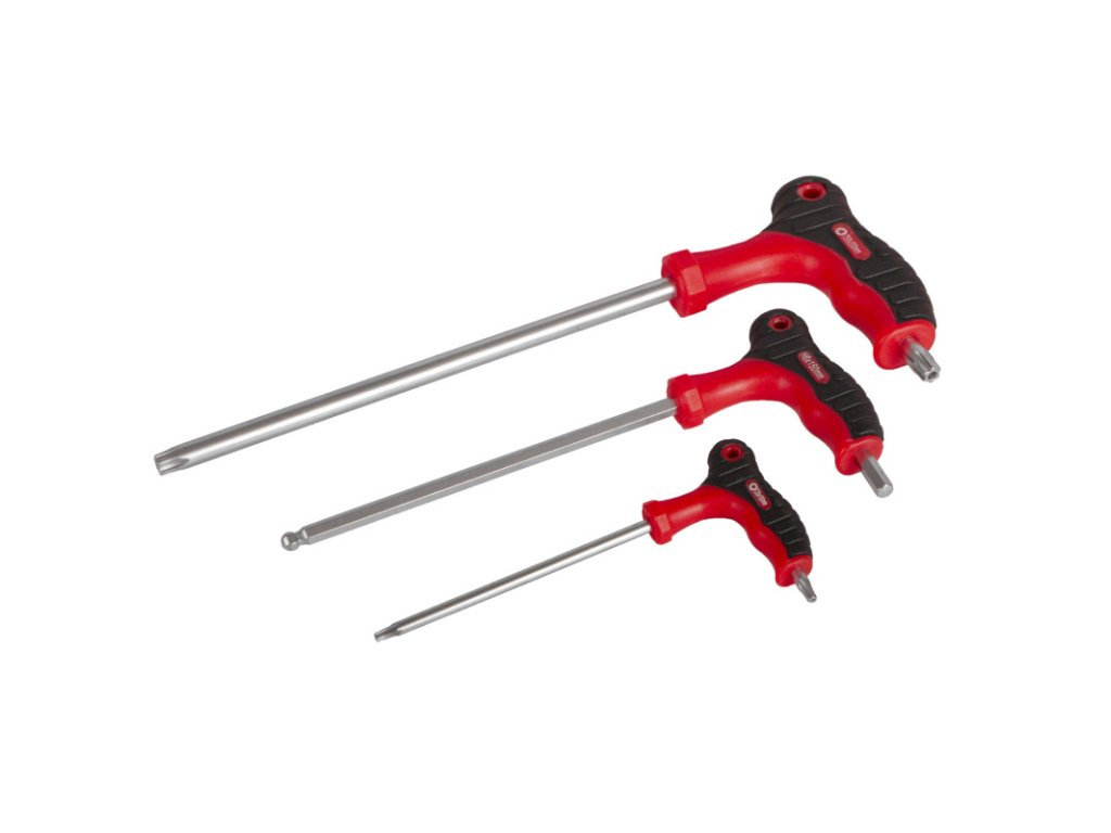 | 9 ks | Šroubováky TORX s T-rukojetí: T10 x 75, T15 x 100, T20 x 100, T25 x 150, T27 x 150, T30 x 150, T40 x 150, T45 x 200, T50 x 200 |