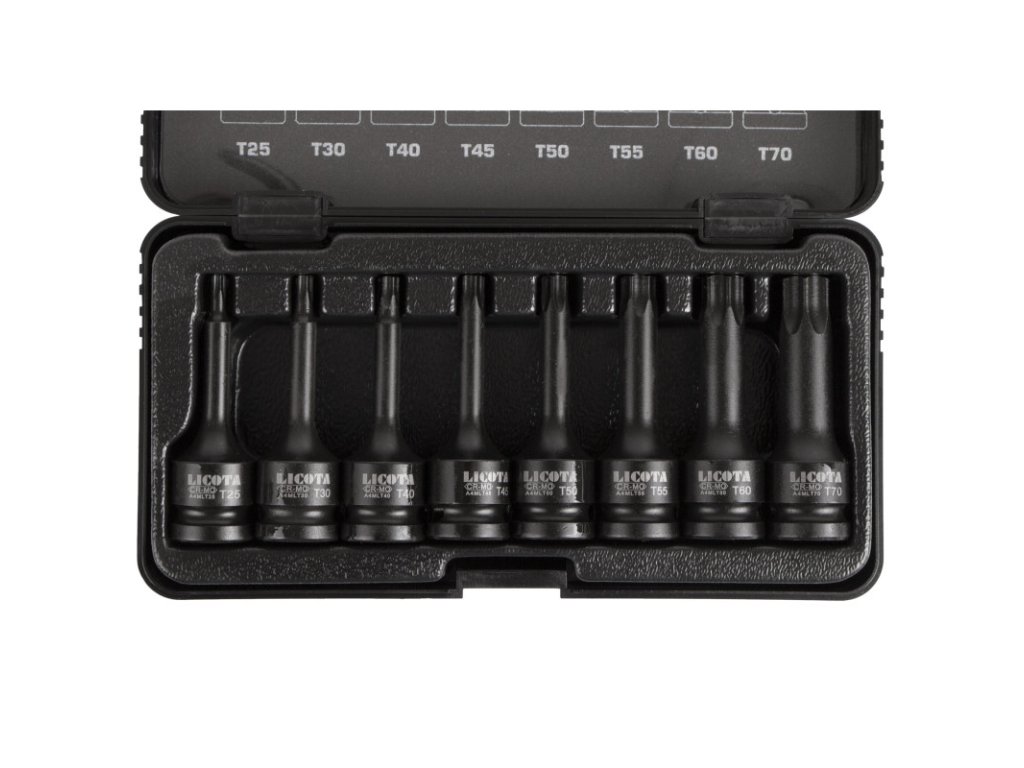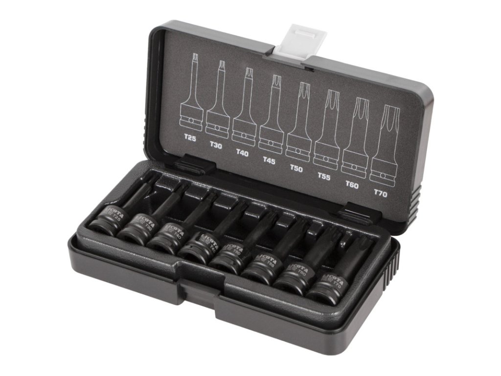 Sada vnějších nástrčných klíčů TORX 1/2" je ideální pro práci s rázovými utahováky díky své konstrukci a rozmanitým velikostem T25-T70.
