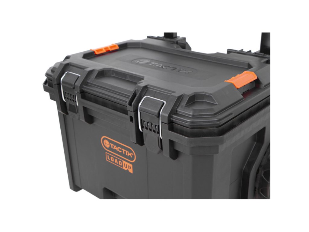 - TACTIX LOAD-UP = celý systém je k sobě propojen rychlými spojkami. Snadné vytažení stisknutím 2 tlačítek ve spodní části kufru. Chcete-li znovu sestavit, jednoduše vložte kufr zpět a stlačením zacvakněte.