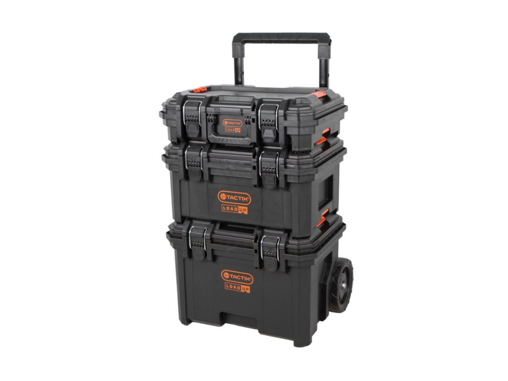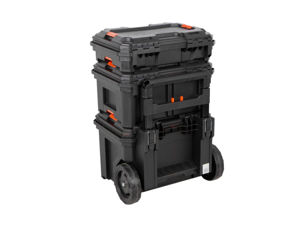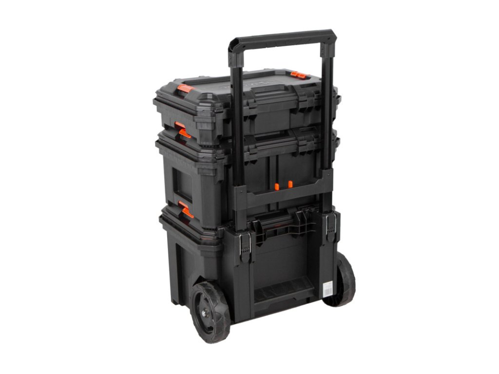 Tento úložný systém nabízí 3 stohovatelné kufry, každý s unikátními vlastnostmi a velkým úložným prostorem.
