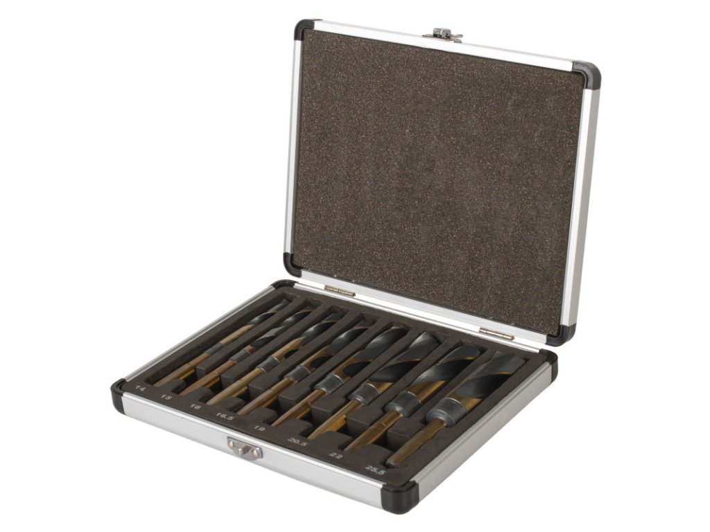 V sadě naleznete vrtáky o rozměrech 14, 15, 16, 16.5, 19, 20.5, 22 a 25.5 mm.
