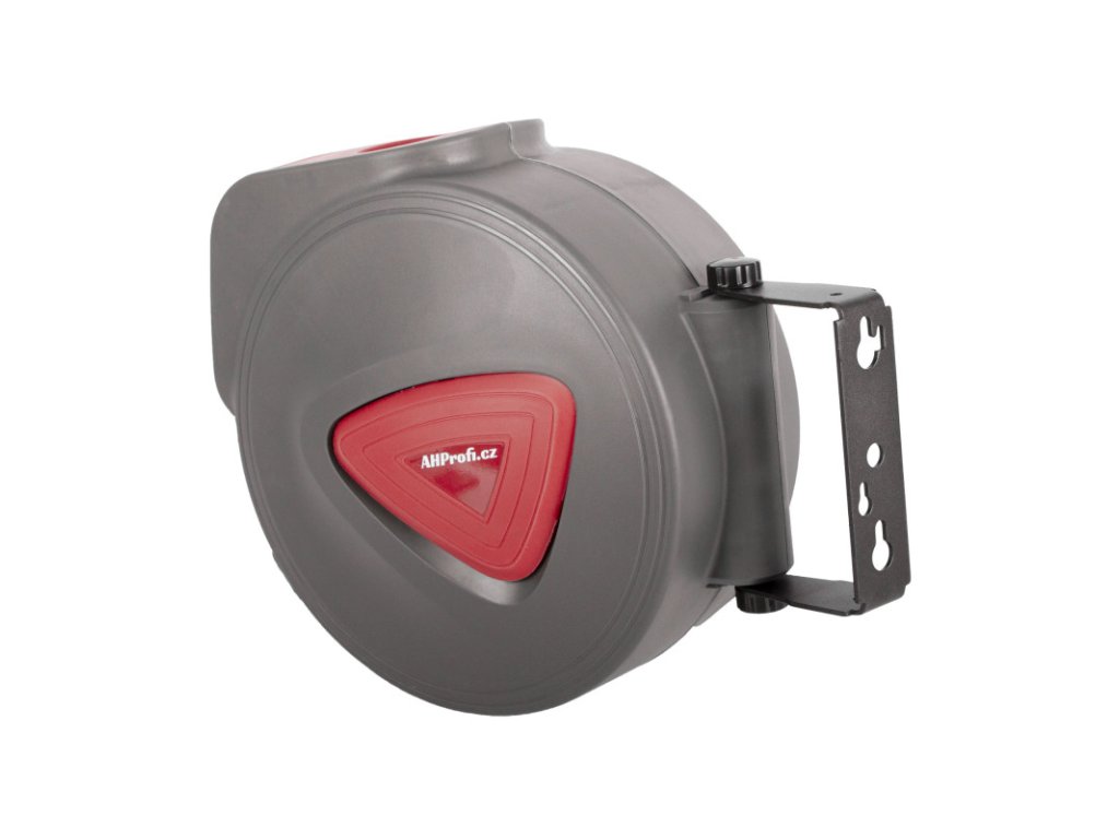 Konstrukci tvoří uzavřený plastový buben s integrovaným pružinovým systémem pro automatické navíjení. Součástí je otočný držák pro montáž na stěnu, strop nebo jinou konstrukci a praktické madlo pro přenášení.