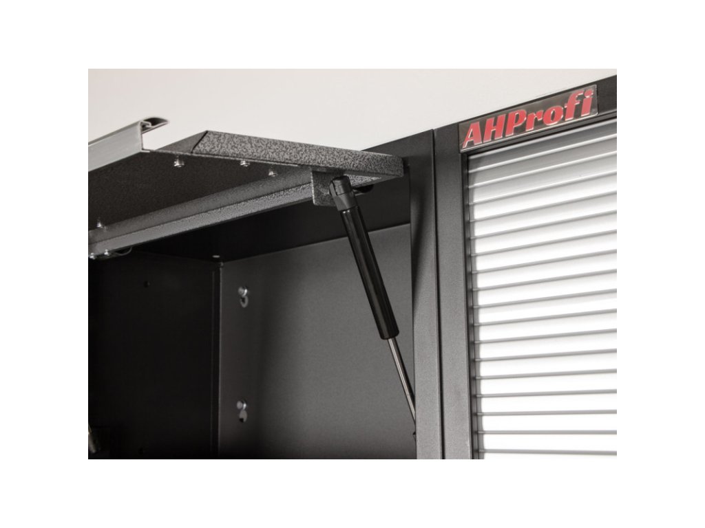 Dílenský nábytek PROFI GREY s dřevěnou deskou zaujme moderním a profesionálním vzhledem. Kombinace kladívkové šedé a černé RAL 9004 barvy se bude vyjímat v každé garáži i dílně. Sestava nábytku v sobě skrývá dostatečné množství úložného prostoru pro vaše nářadí, autotechniku i dílenské vybavení. V kombinaci s bytelnou pracovní deskou získáte multifunkční stěnu, se kterou vám půjde práce od ruky ve všech směrech. Jednotlivé komponenty jsou plně konfigurovatelné, sestavu je možné dle vašich potřeb rozšířit o další skříně, regály i ponk.Sestava dílenského nábytku AHP1300, 6dílná