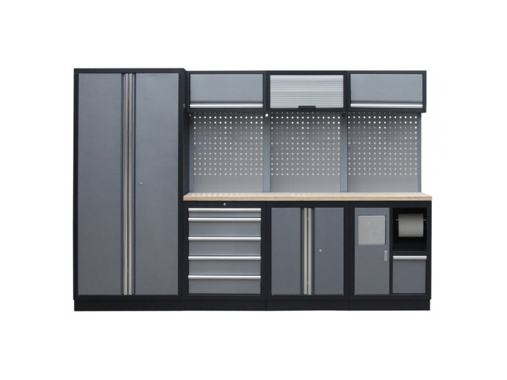 Sestava nábytku v sobě skrývá dostatečné množství úložného prostoru pro vaše nářadí, autotechniku i dílenské vybavení. V kombinaci s bytelnou pracovní deskou získáte multifunkční stěnu, se kterou vám půjde práce od ruky ve všech směrech.