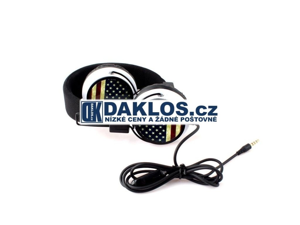 Stereo sluchátka s retro vlajkou - Amerika / USA (3,5 mm Jack)