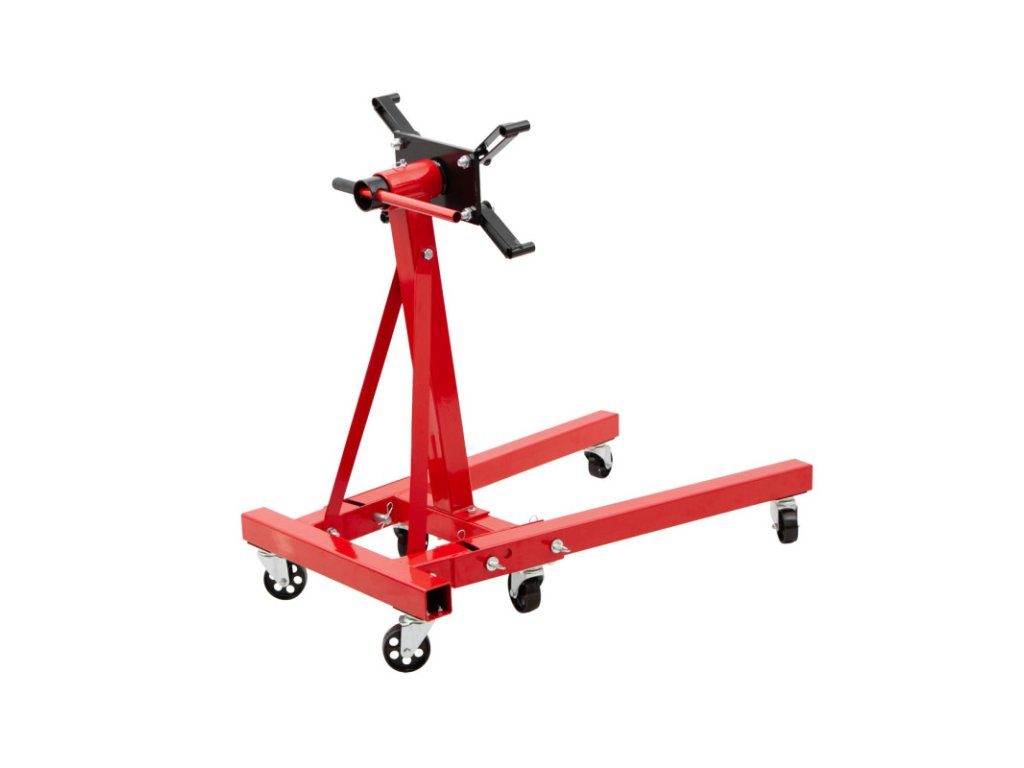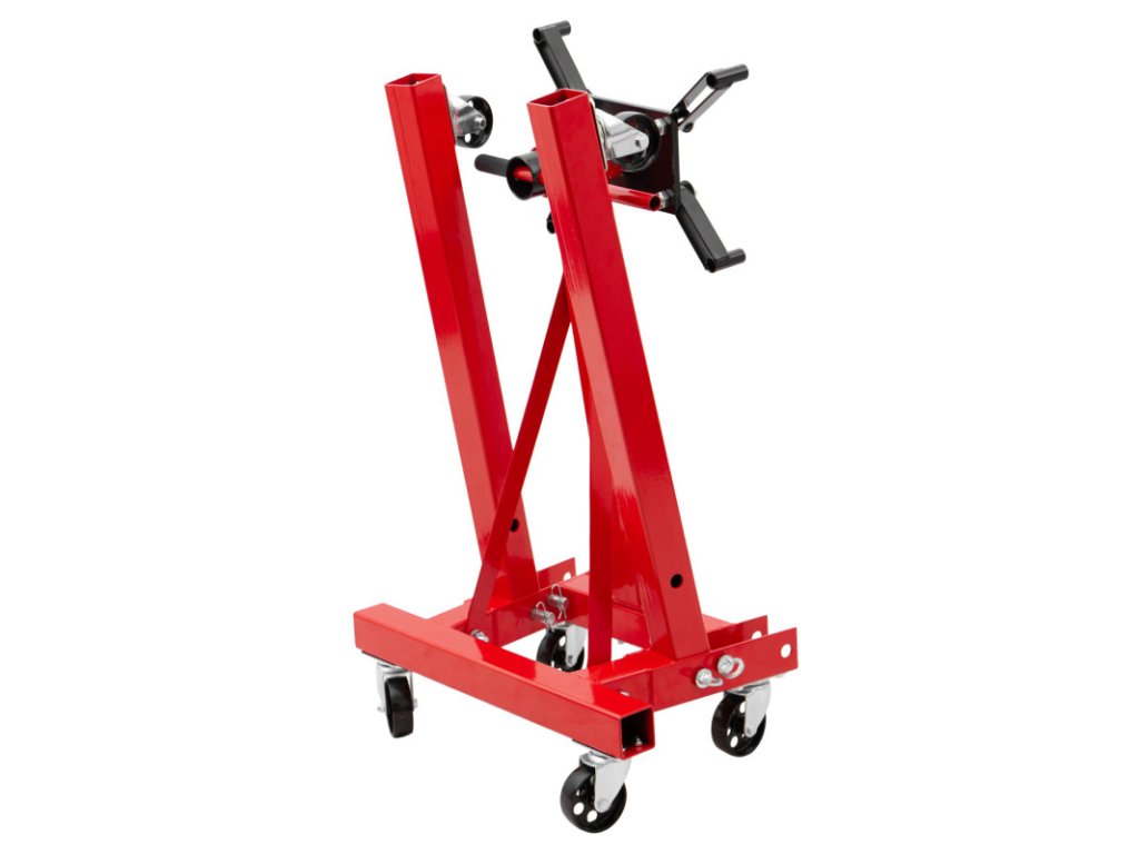 Univerzální stojan na motor pro bezpečné uchycení demontovaných motorů při jejich opravě a údržbě v dílnách a autoservisech.