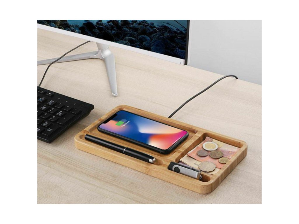 Stolní dřevěná bezdrátová nabíječka DCHARGE 10W a kancelářský organizér