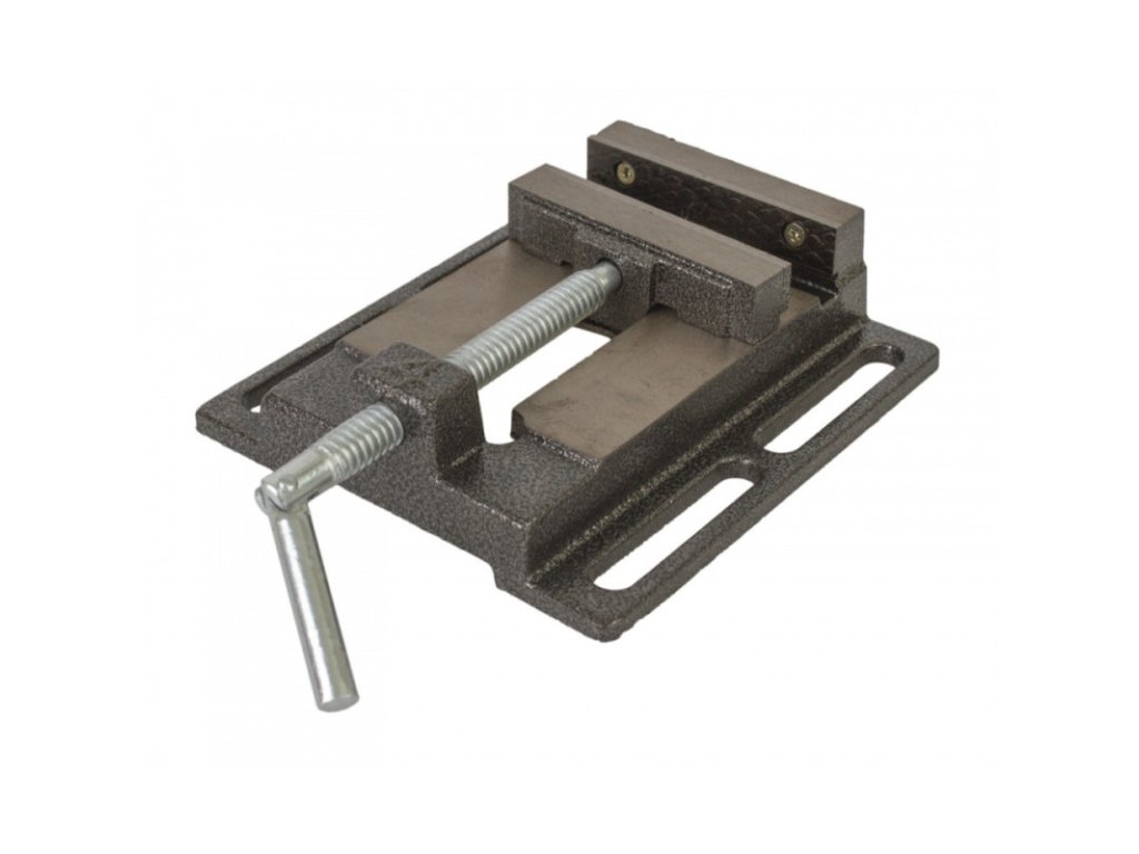 Litinový strojní svěrák, určený k montáži na pracovní stoly nebo pod stojanové vrtačky.