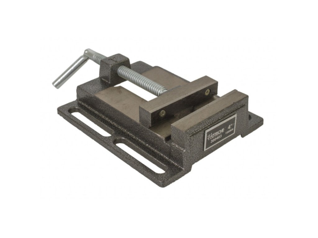 Optimální přenos síly díky upínací páčce, podélné upevňovací drážky s univerzálními rozměry pro snadnou montáž na všechny běžné vrtací stoly.