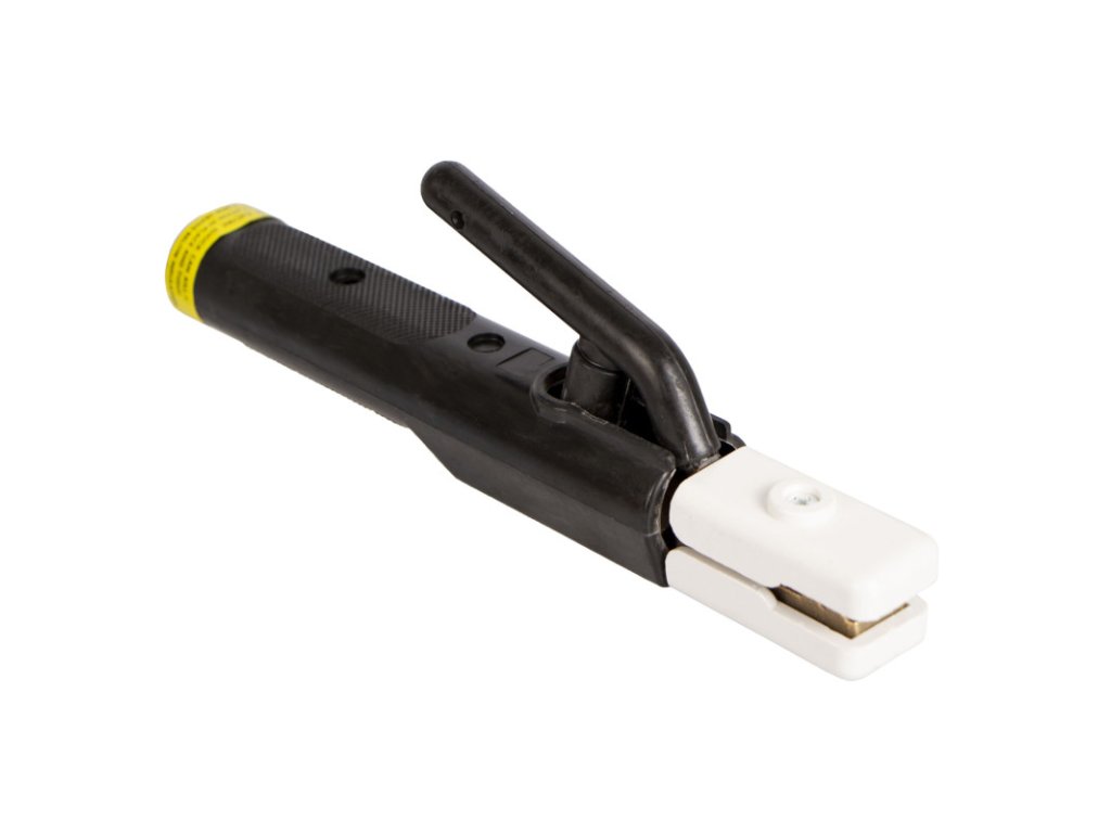 Držák elektrod je v provedení s izolovanou rukojetí a silnou pružinou pro pevné sevření elektrod. Elektroda lze do kleští upnout pod více úhly pro snadnější manipulovatelnost.