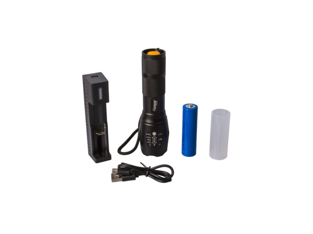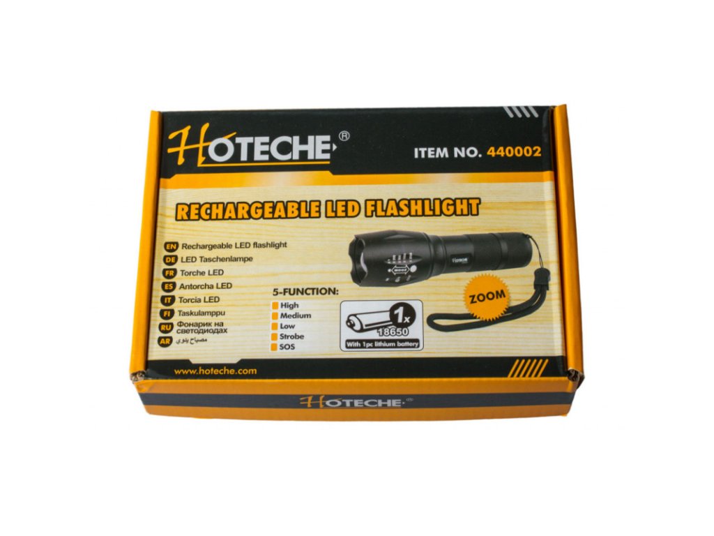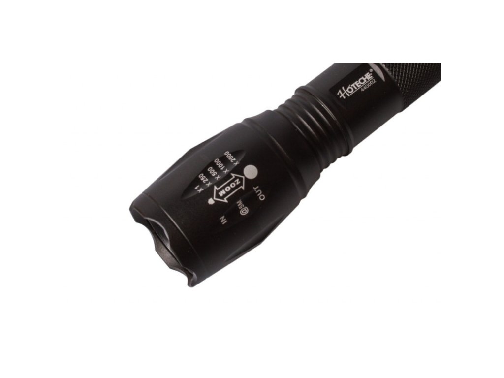 Kapesní LED baterka značky Hoteche, která disponuje pěti funkcemi. Mezi funkce zařazujeme SOS, strobo, nízké, střední a vysoké svícení. Baterka dokáže zoomovat.