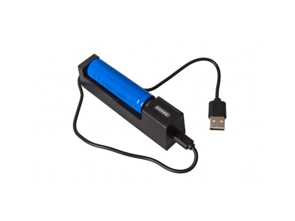 Svítilna funguje na baterii. Buď lze používat 1x lithiovou baterii, kterou můžete dobíjet přes kabel USB, a nebo 3x alkalickou baterii AAA.