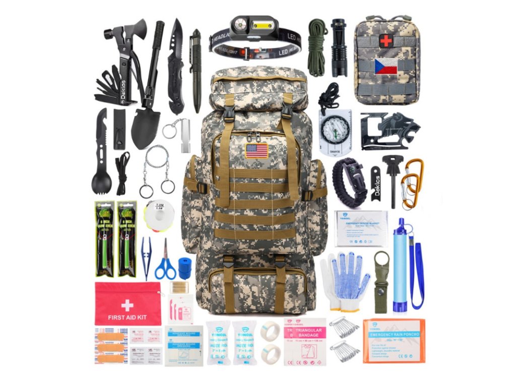 Taktický SOS box a batoh pro přežití v přírodě, sada 133 v 1, KPZ - krabička poslední záchrany