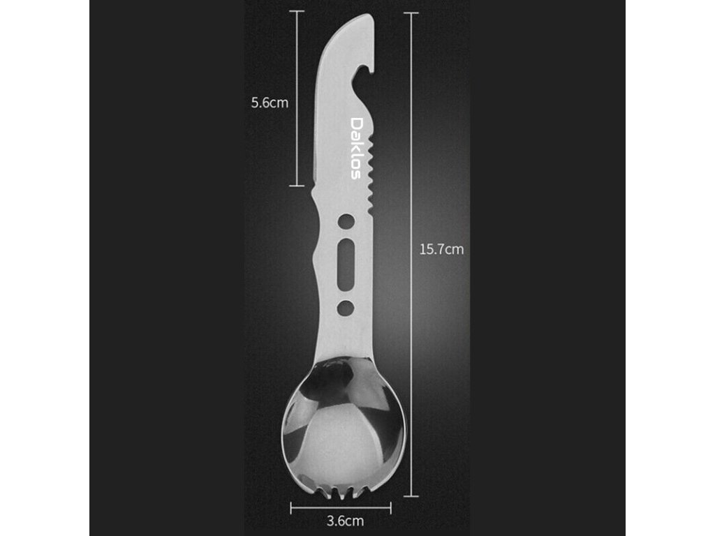 1 x Příbor 5 v 1 - Lžíce, vidlička, nůž, otvírák lahví, pilka