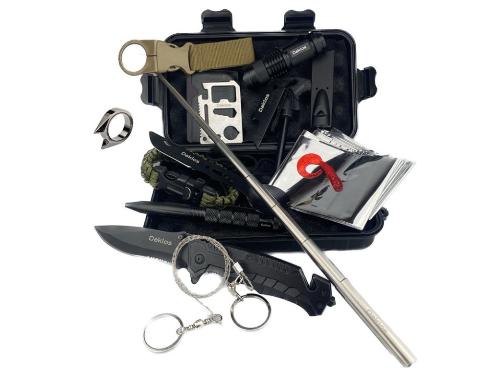 Taktický SOS box pro přežití v přírodě, sada 33 v 1, KPZ - krabička poslední záchrany