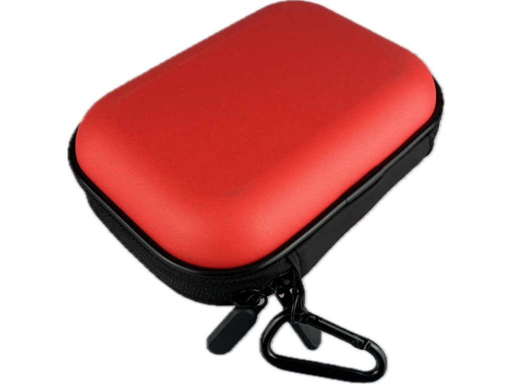 Červený box se zipem a karabinou 16,5 cm x 12 cm x 6 cm