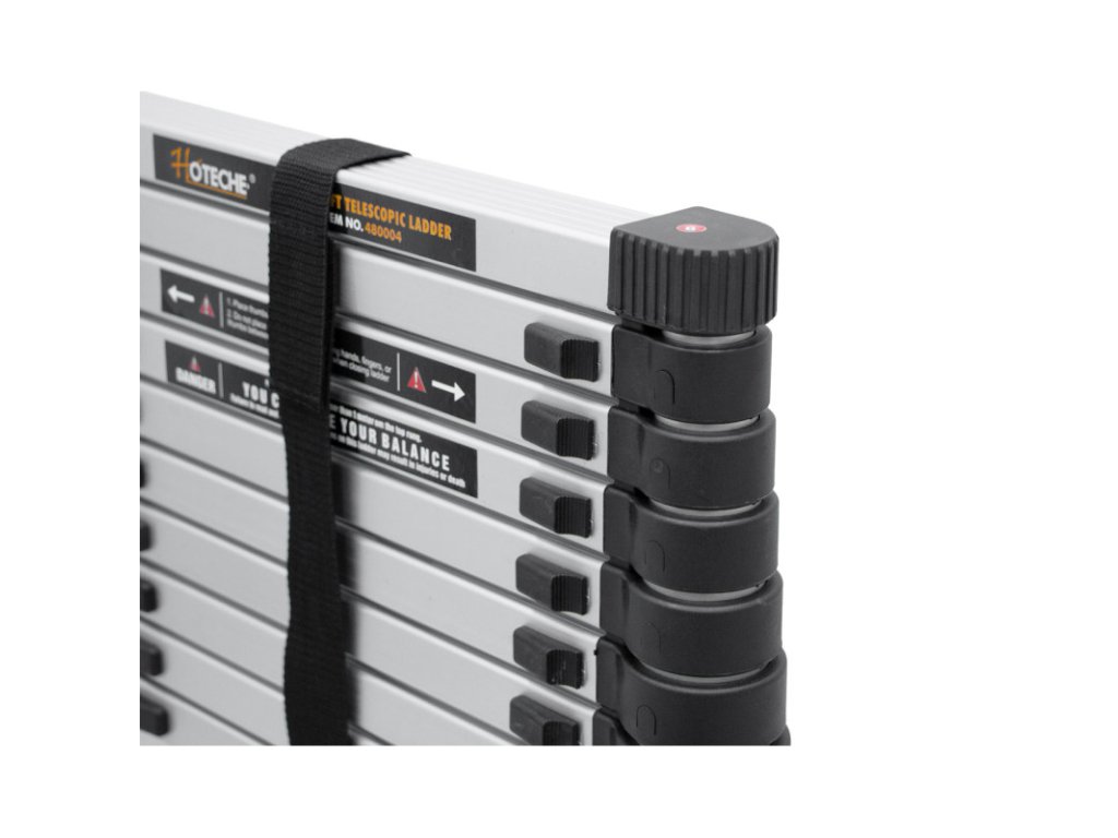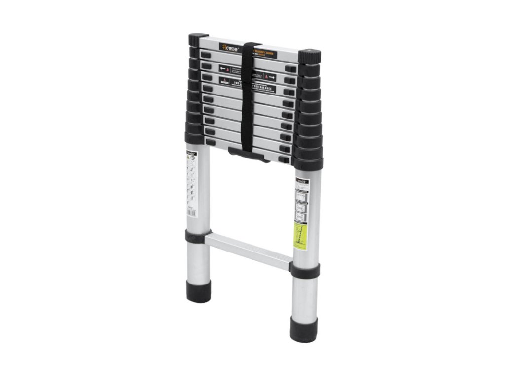 Hliníkový teleskopický žebřík o délce 3,2 m pro práce v interiéru i exteriéru a širokou škálu úkolů, jako je malování, čištění oken nebo montážní práce.