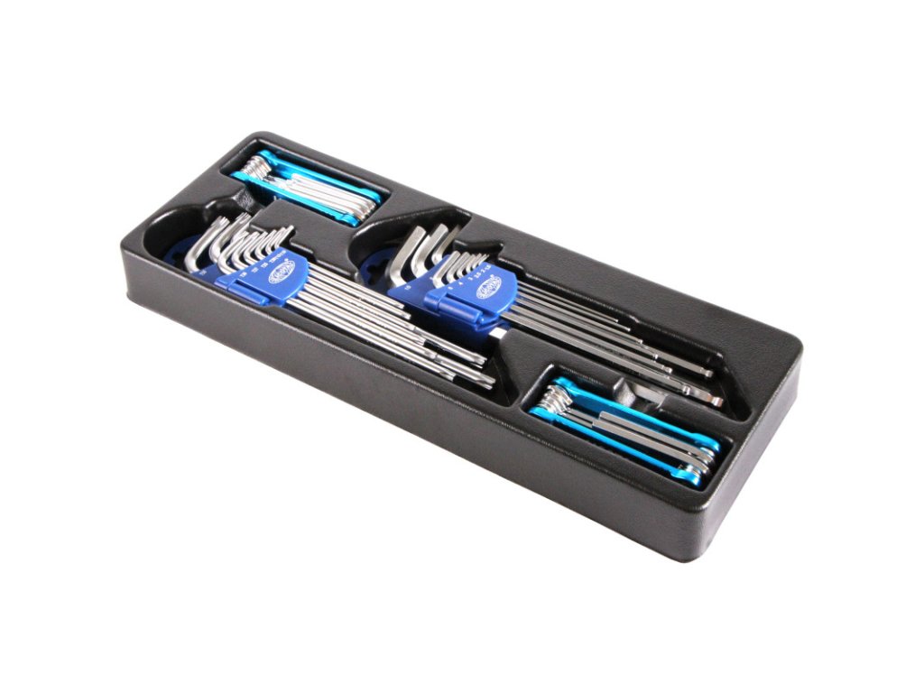 Plastová výplň profesionálních Torx a Imbusových klíčů do dílenských vozíků nebo pracovních stolů (ponků).