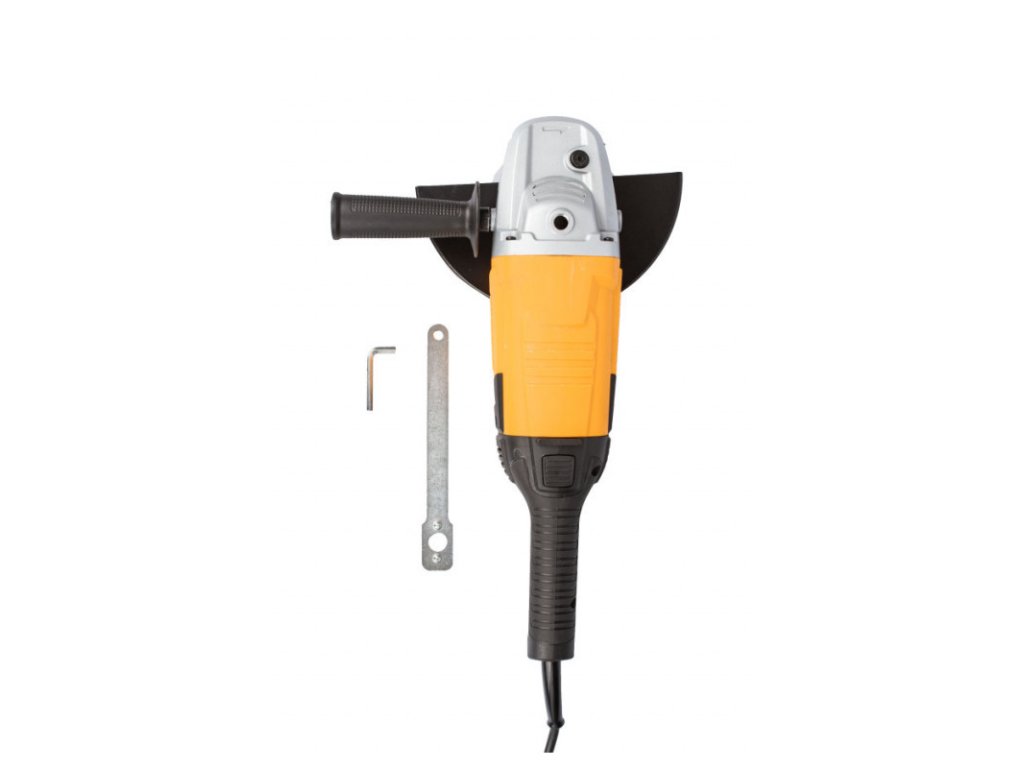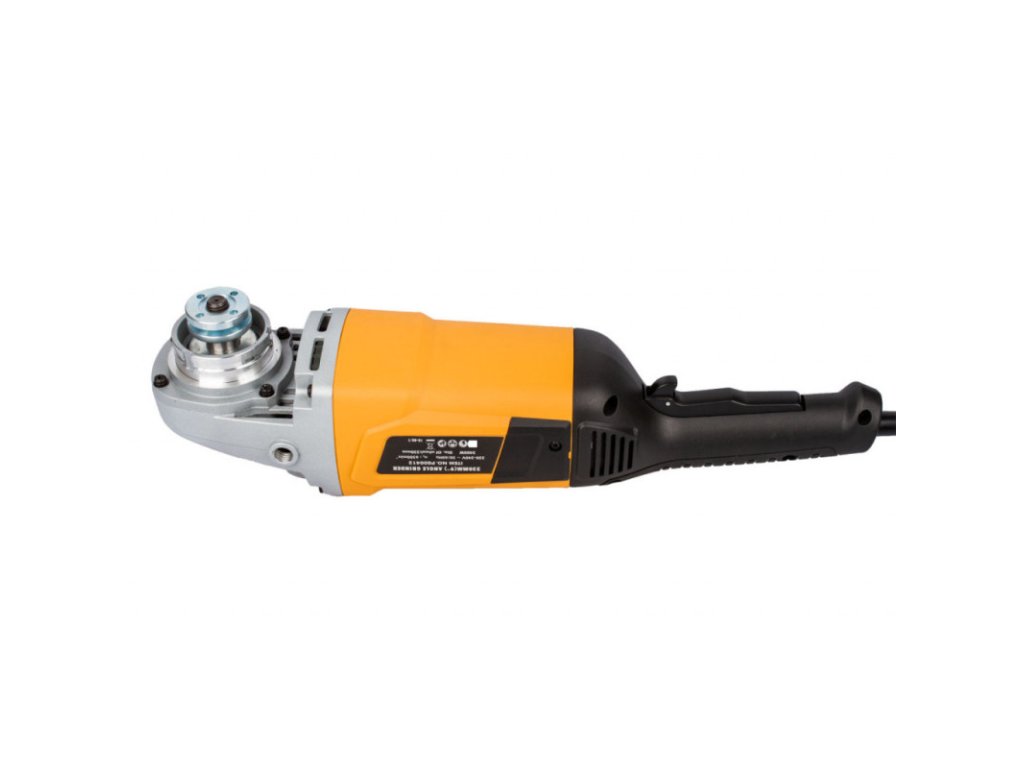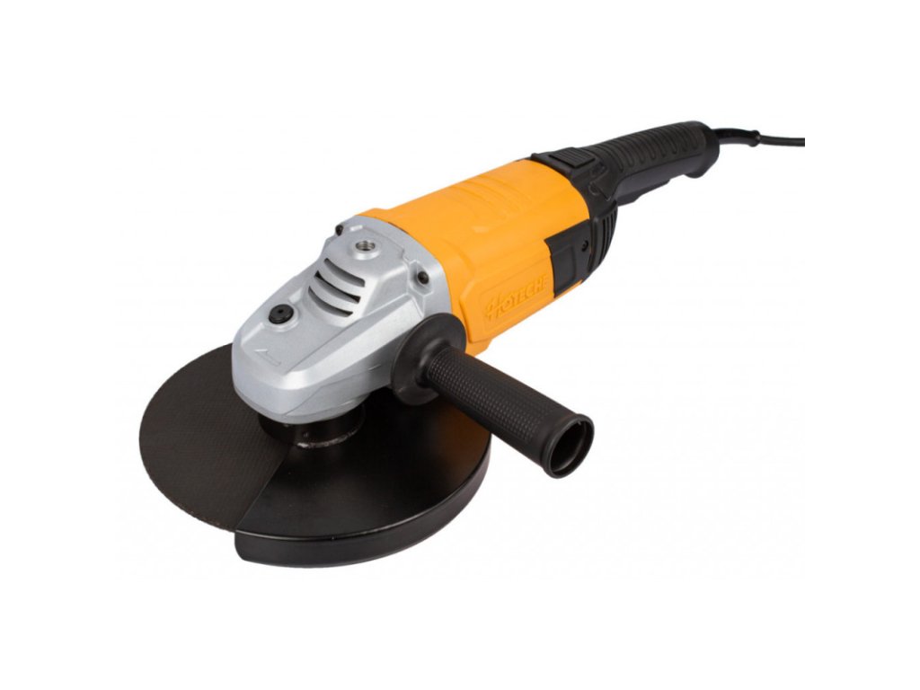 Velmi výkonná úhlová bruska Hoteche 230 mm s výkonem 2400W, díky kterému dosahuje až 6500 otáček za min-1 naprázdno. Řezat, brousit nebo kartáčovat můžete pomocí kotoučů o průměru 230 mm, které upnete na vřeteno se závitem M14.