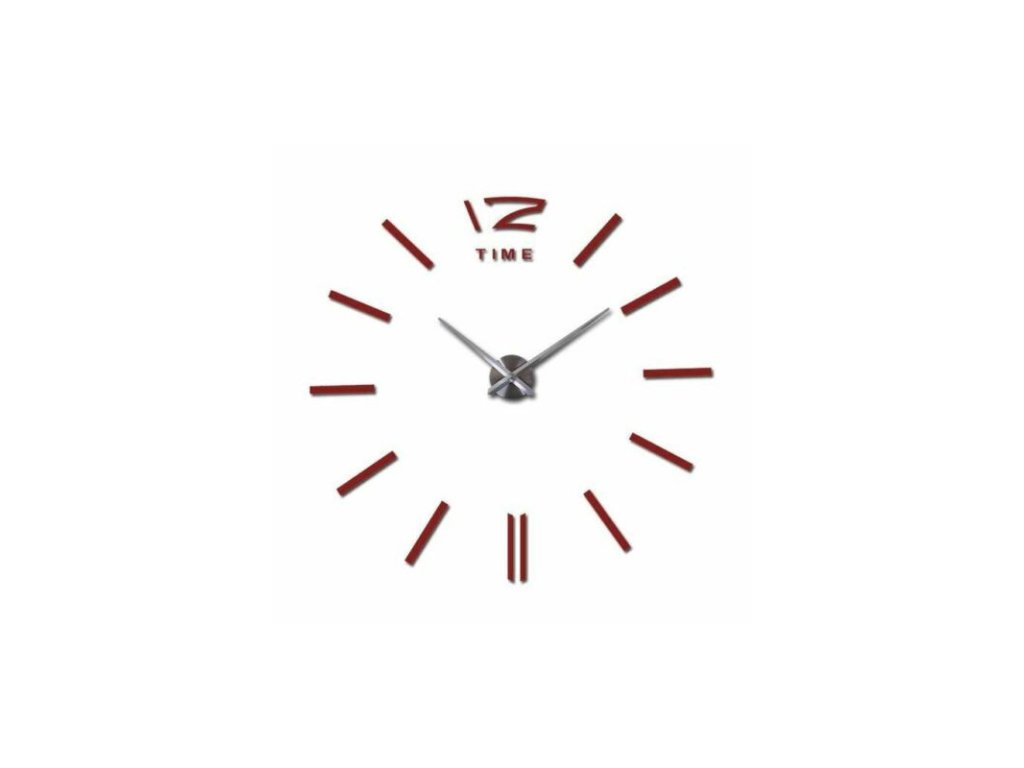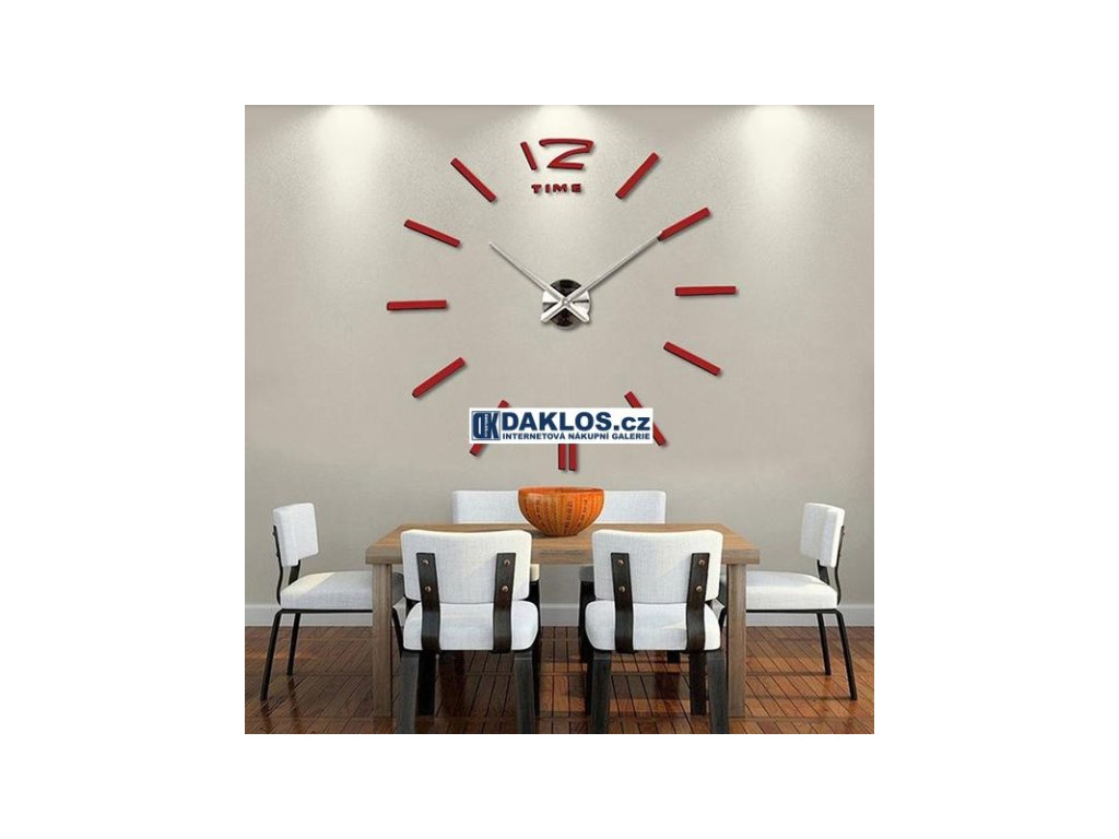 Velké nalepovací 3D nástěnné analogové hodiny - 12 - červené