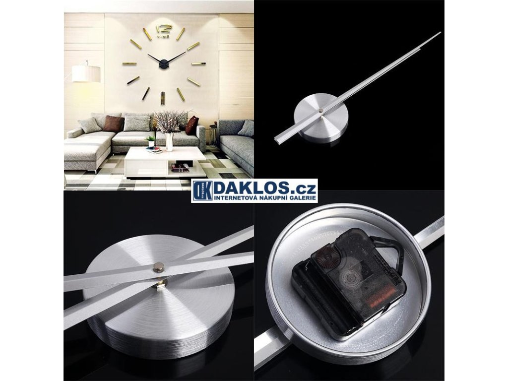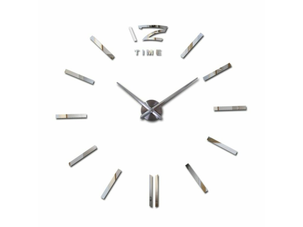 Velké nalepovací 3D nástěnné analogové hodiny - 12 - stříbrné