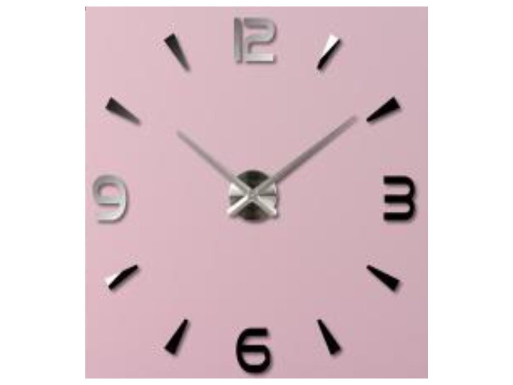 Velké nalepovací 3D nástěnné analogové hodiny - 4 čísla - stříbrné / černé