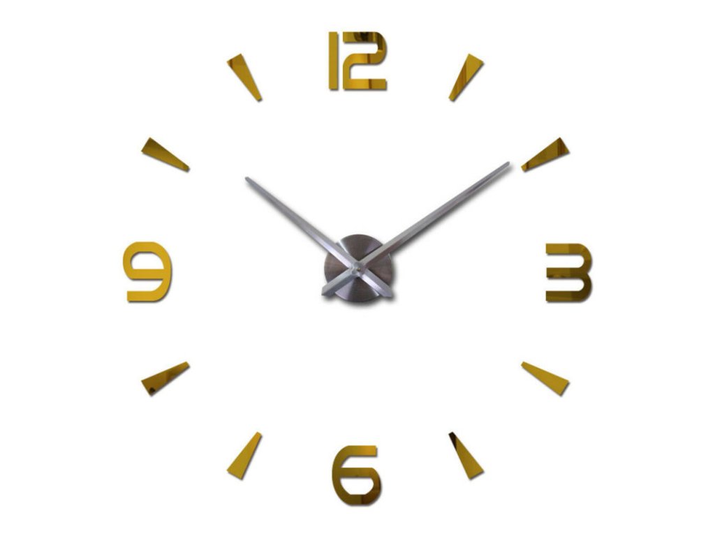 Velké nalepovací 3D nástěnné analogové hodiny - 4 čísla - zlaté