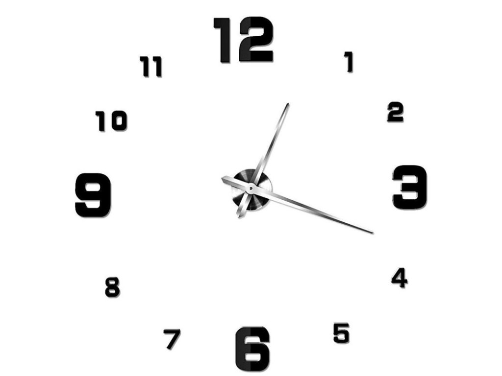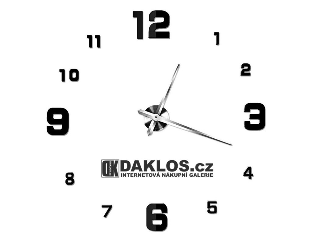 Velké nalepovací 3D nástěnné analogové hodiny - velká malá čísla - černé