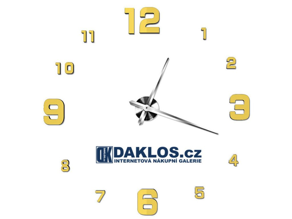 Velké nalepovací 3D nástěnné analogové hodiny - velká malá čísla - zlaté