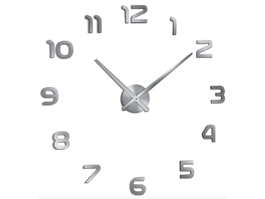 Velké nalepovací 3D nástěnné analogové hodiny - Všechna čísla - stříbrné