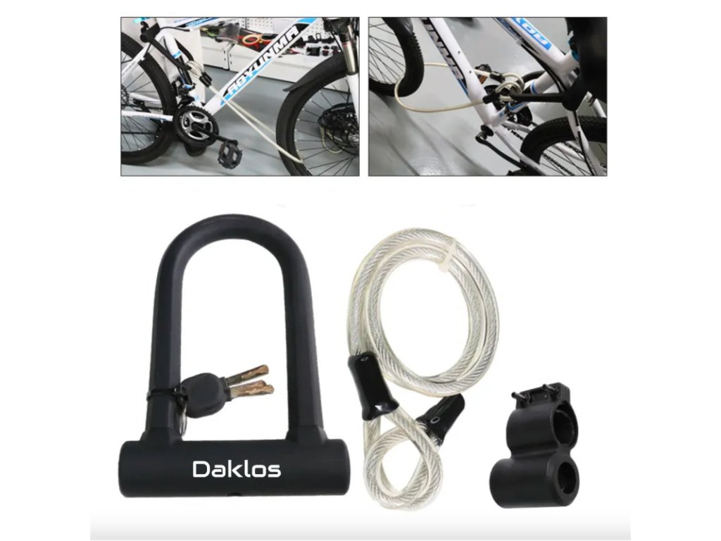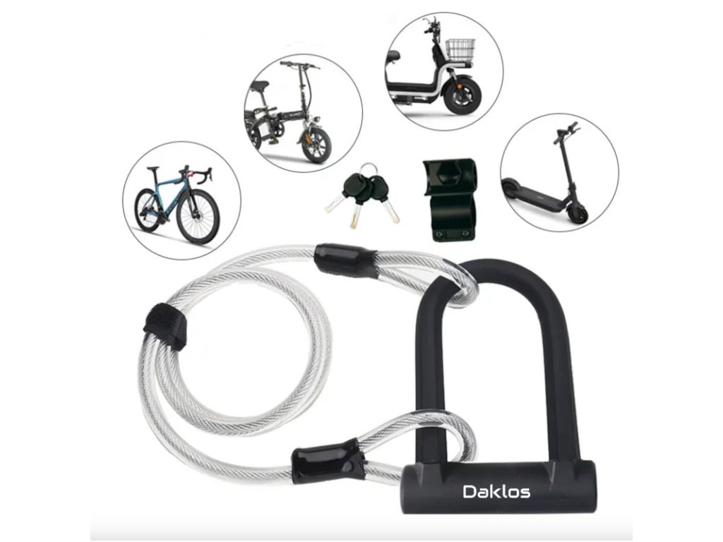 Velmi odolný zámek na kolo ULOCK černý + ocelové lano stříbrné