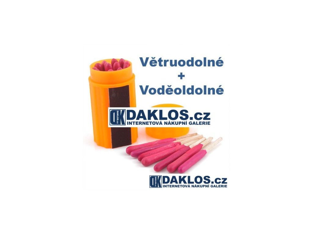 Větruodolné silné zápalky ve voděodolném pouzdru pro přežití