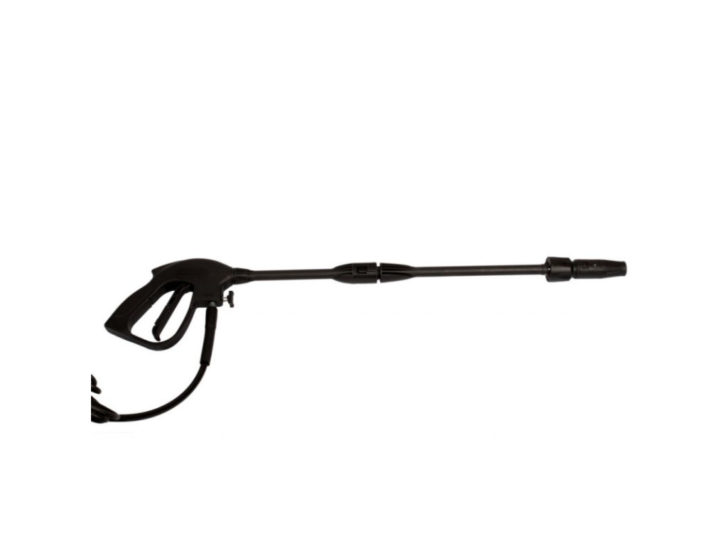 První část s rukojetí a spouští má na sobě připojenou krátkou hlaveň, do které připojíme prodlužovací nástavec a do něj pak můžeme připojit rozstřikovač, kterým usměrňujeme a regulujeme sílu a proud vody. Pro čištění trysky naleznete v balení jehlový čistič usazenin.