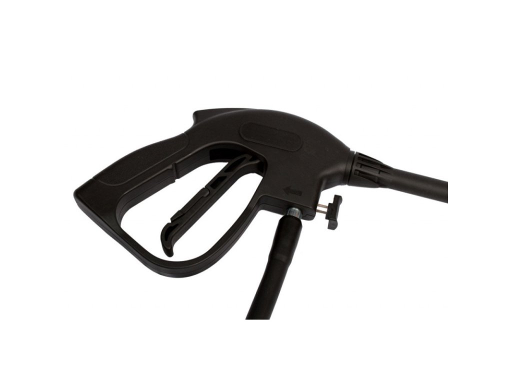 Ve spoušti je pojistka pro nechtěné zapnutí v podobě výklopného aretačního kolíku, který používejte v zájmu bezpečí. Vysokotlaká myčka disponuje systémem Auto-Stop, který okamžitě zastaví motor/ přívod proudu vody po uvolnění spouště pistole.