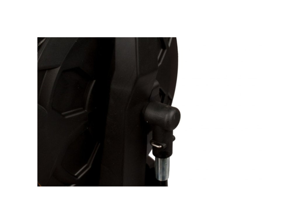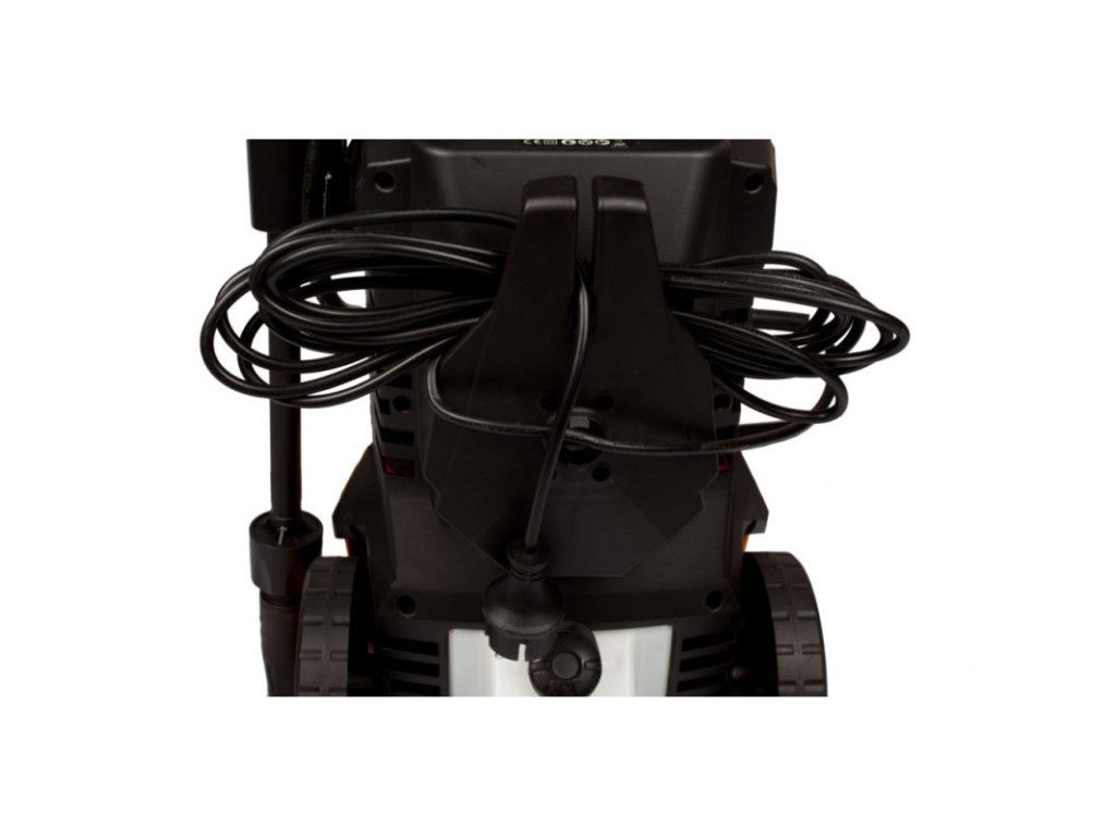 Pevné madlo a celoplastová kolečka usnadní dopravení vysokotlakého čističe na potřebné místo. Tlaková hadice je navinuta na manuální naviják s klikou, který je umístěný v konstrukci madla a hadice tak nijak nepřekáží. Hadice je vedena od vývodu v těle myčky do boku navijáku a pak středem navijáku do 5 m tlakové hadice, která přívodní k tlakové pistoli a je zakončena rychlospojkou, takže doporučujeme při uskladnění odpojit (pozor - dodržujte pokyn pro rozebrání - po vypnutí vapku "odtlakujte") od stříkací vysokotlaké pistole a hadici navinout celou, uspoříte tak trochu místa navíc.