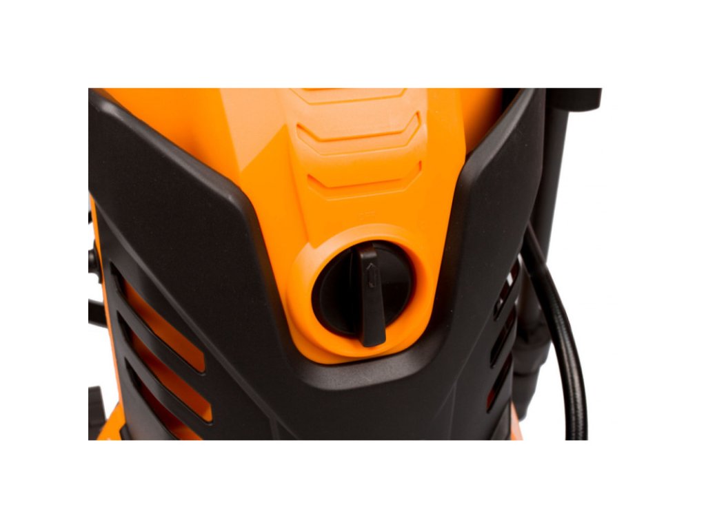 Vysokotlaký čistič je vyroben z kvalitního pevného matného plastu a skládá se z těla vapky, transportního madla s navijákem vysokotlaké hadice, kolečky a vysokotlaké pistole.