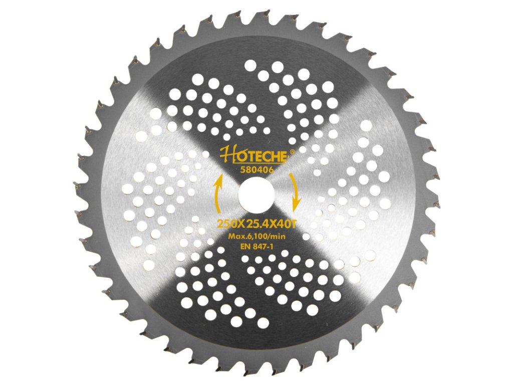 Pilový kotouč pro křovinořezy z uhlíkové oceli o průměru 255 mm.