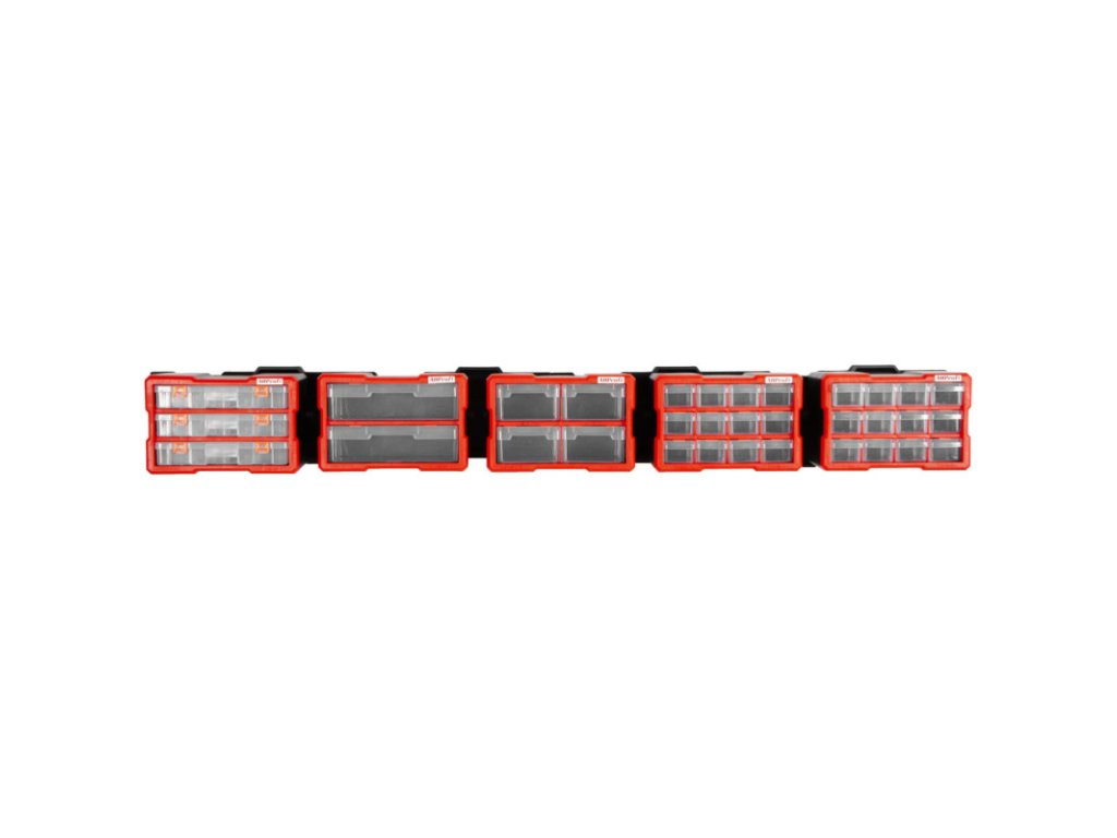 Tato sada nabízí širokou škálu organizérů pro vše od šroubků, matic, aj., až po menší kusy nářadí.